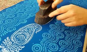 > Saree Block Printing: Traditional block-printed patterns in vibrant colors.